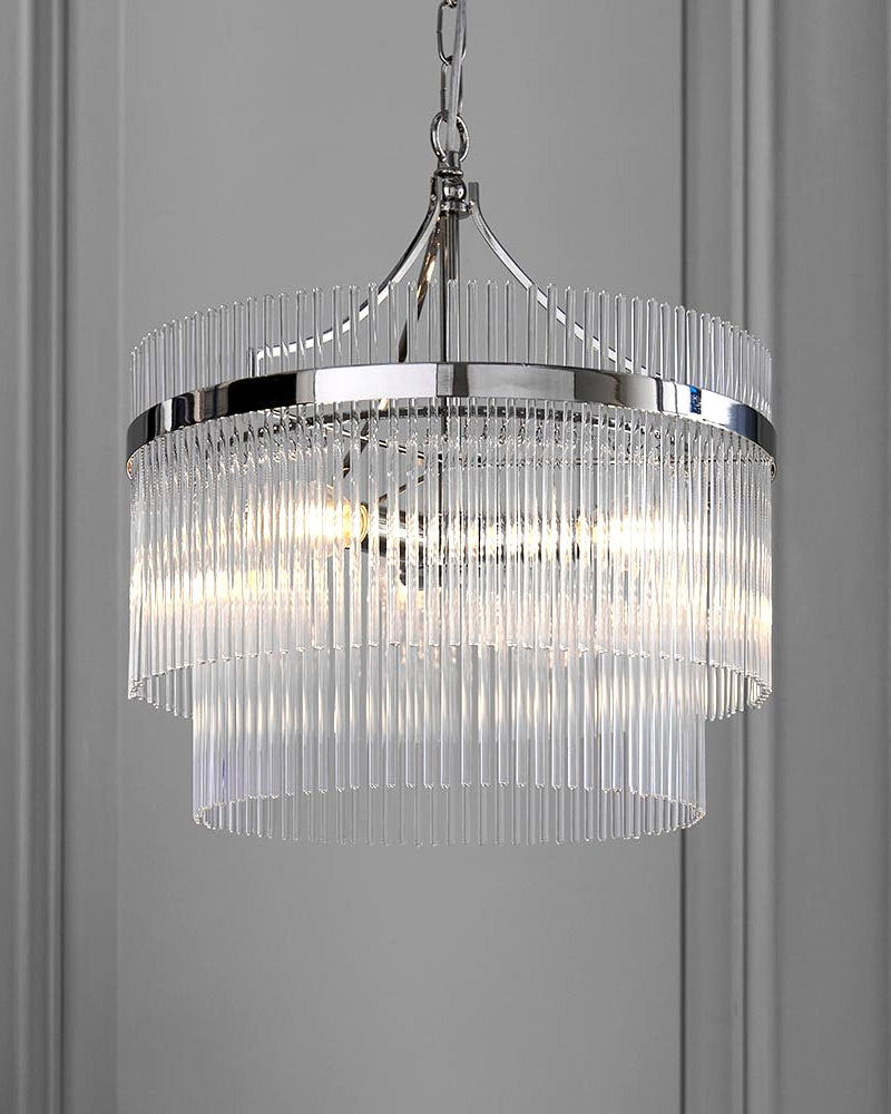 A beautiful contemporary interpretation of the chandelier in antique brass or polished nickel finish. Shop this BEST SELLING collection.