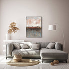 Large abstract painting featuring tons of Blues, Neutrals & Reds.