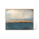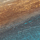 Large abstract painting with tones of Golds, Greens & Blues almost looking with a sunset in the ocean.