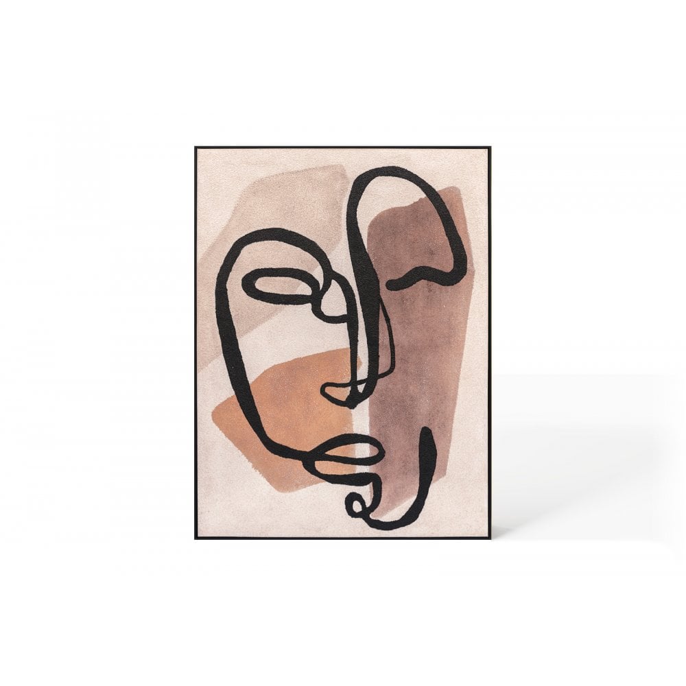 Large abstract face painting with textured tones of Nudes, Neutrals & Black silhouette.