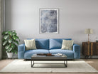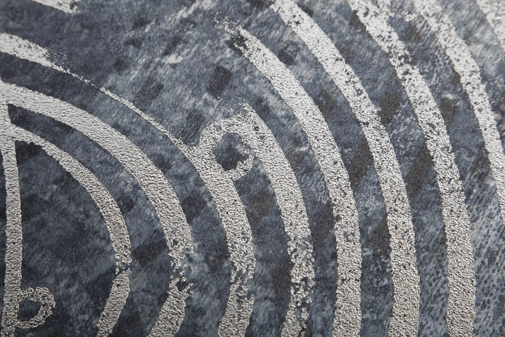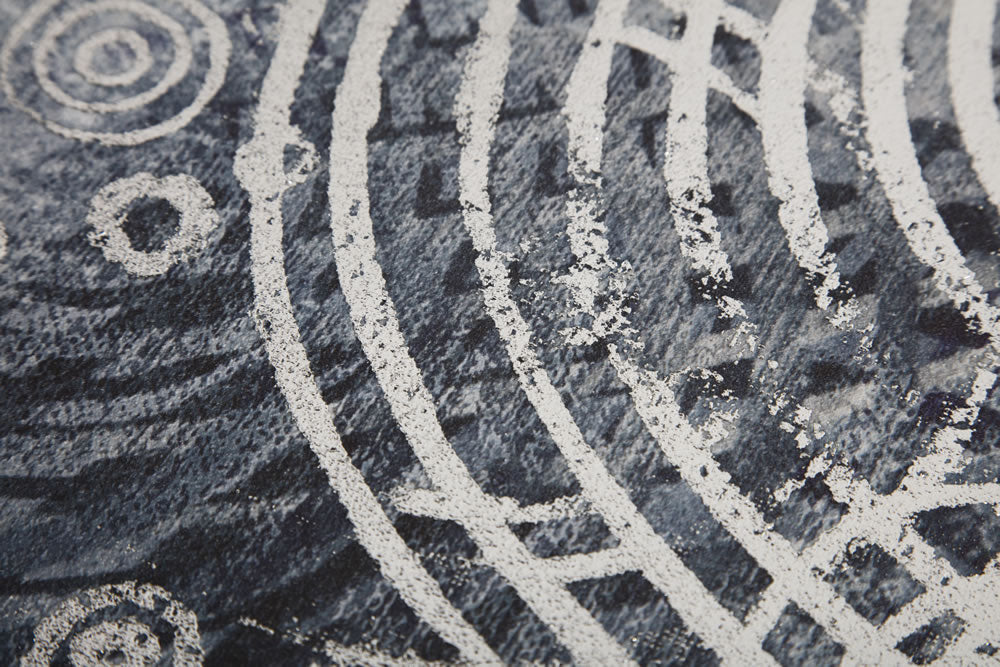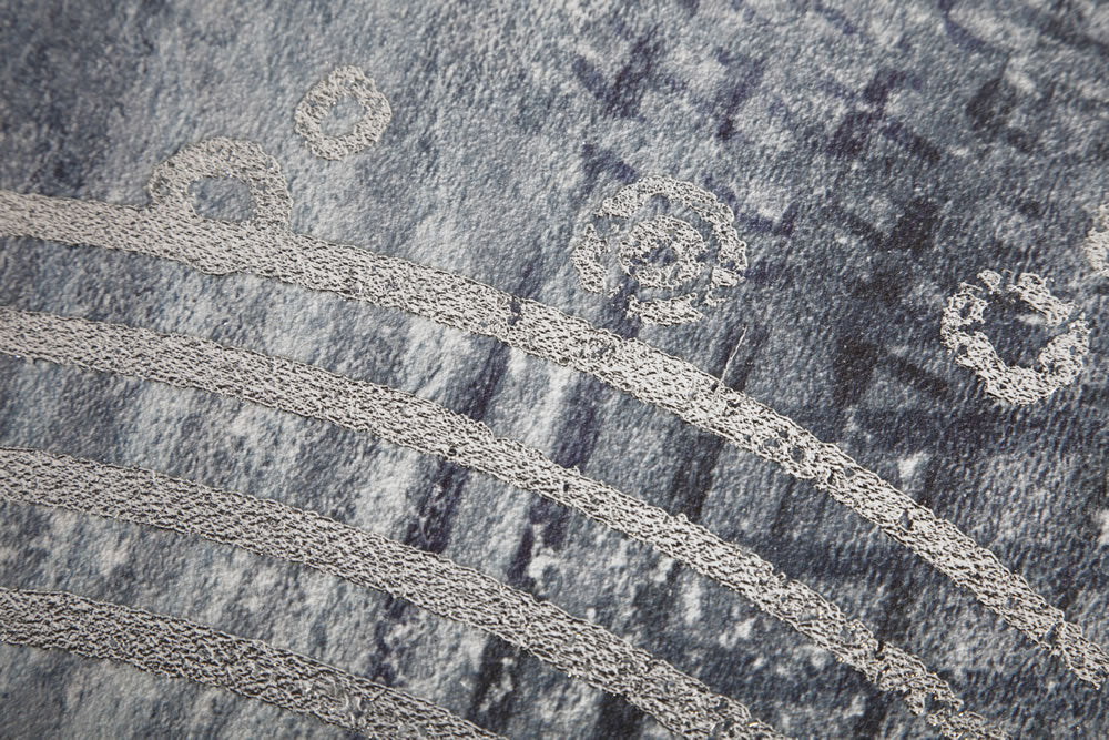 Printed canvas with silver frame and machined silver foil print design.