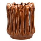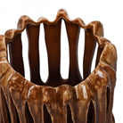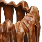 Sculptural and tactile, the Denton Veil Vase in Amber is a celebration of artisanal form and finish. Handcrafted in stoneware, its flowing, openwork design evokes fabric caught in motion - each curve casting soft interplay between light and shadow. The piece is finished with a rich reactive glaze at the top, lending a glossy, fluid character that transitions into a matte surface below. This subtle contrast draws attention to the vase’s contours, offering both visual depth and textural balance. A standalone accent, it brings quiet drama and material warmth to curated interiors.