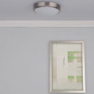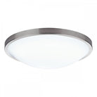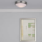 The Dover bathroom flush has an opaque white acrylic shade set within a satin chrome frame.