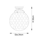 Timeless modern flush light with clear dimpled glass. Perfect design for low ceilings and suitable in any room as IP44 rated. Dimmable and ideal to use with E27 LED lamps.