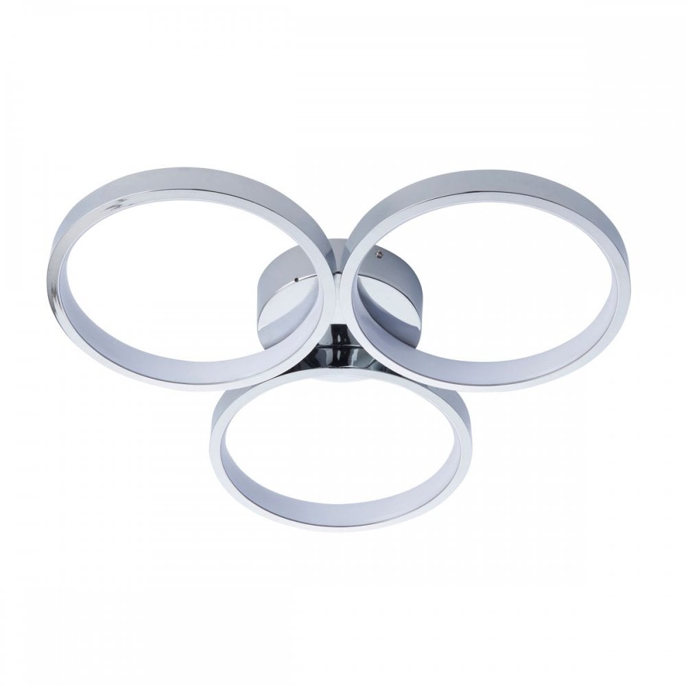 A simple geometric hoop ceiling light finished in chrome with bright integrated LED light.