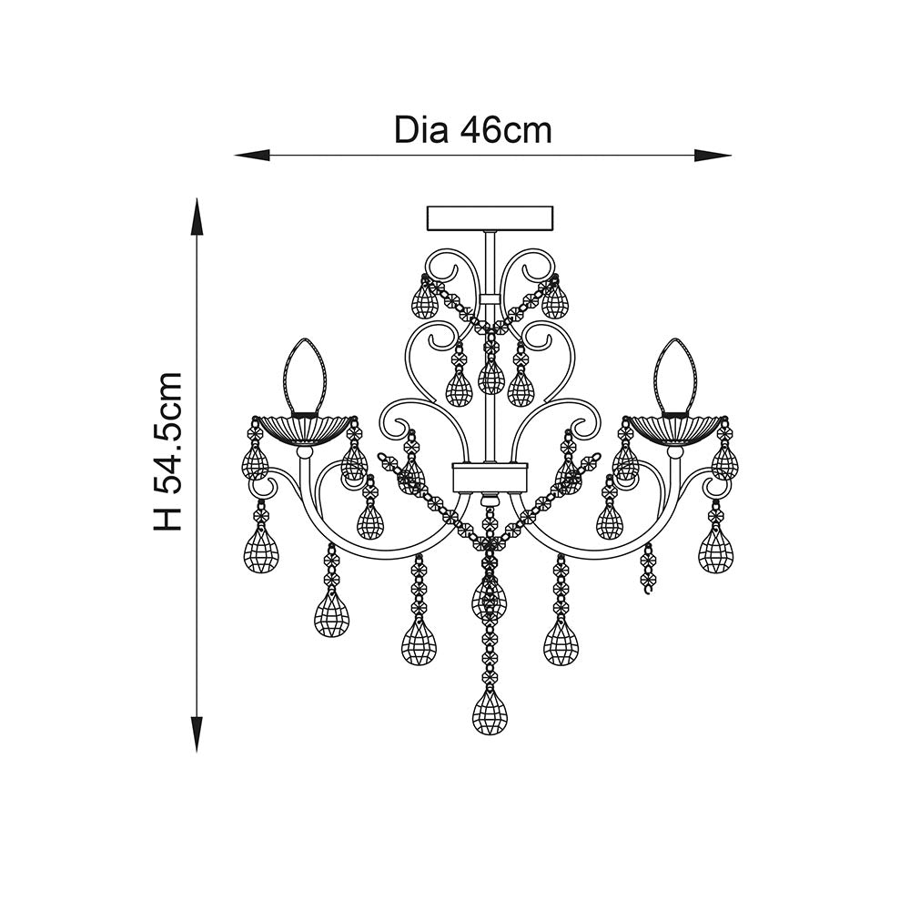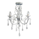 The Tabitha 3 light semi flush ceiling fitting is finished in a chrome effect plate with clear crystal glass detail and droplets. IP44 rated so suitable for use in the bathroom, dimmable and suitable for use with LED lamps. Matching items available.