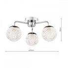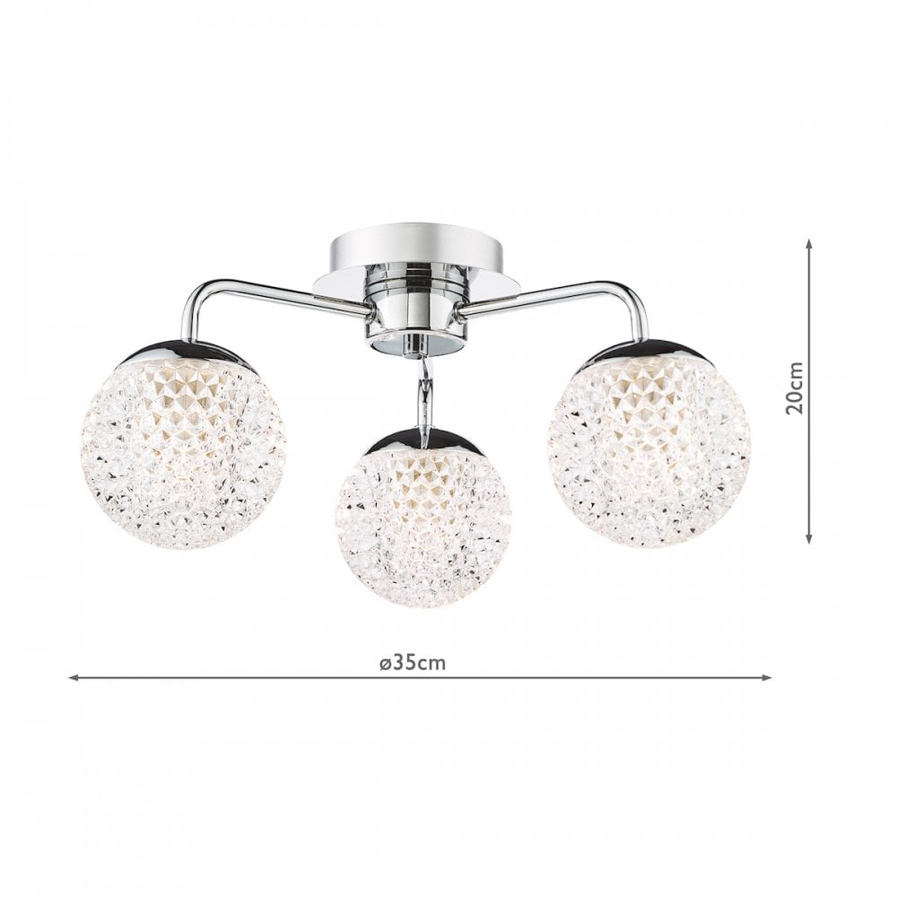 Illuminate your bathroom in style with the Teva 3 Light Semi-Flush fixture from dar lighting. This sleek bathroom ceiling light combines polished chrome and clear accents for a modern, sophisticated look. The semi-flush mount design keeps the fixture close to the ceiling, perfect for rooms with lower heights. Featuring unique honeycomb acrylic shades, it diffuses light beautifully while adding visual interest. Don't worry about splashes - this IP44-rated light is designed to withstand bathroom conditions. Want a cohesive look? A matching wall light is available in the same range. Whether you're applying makeup or enjoying a relaxing soak, the Teva light ensures your bathroom is both functional and fashionable.