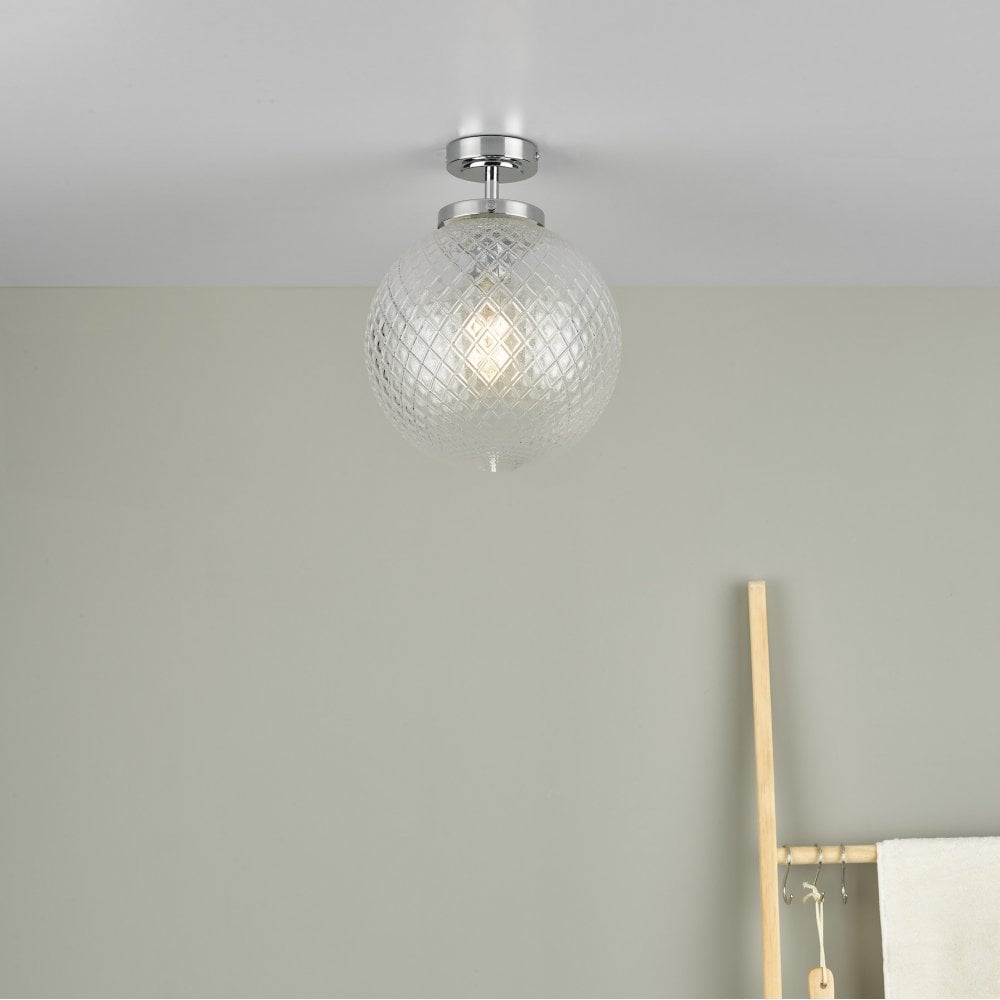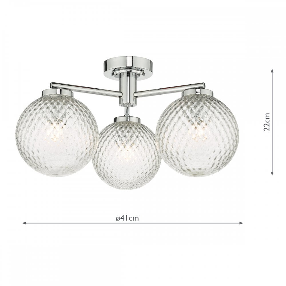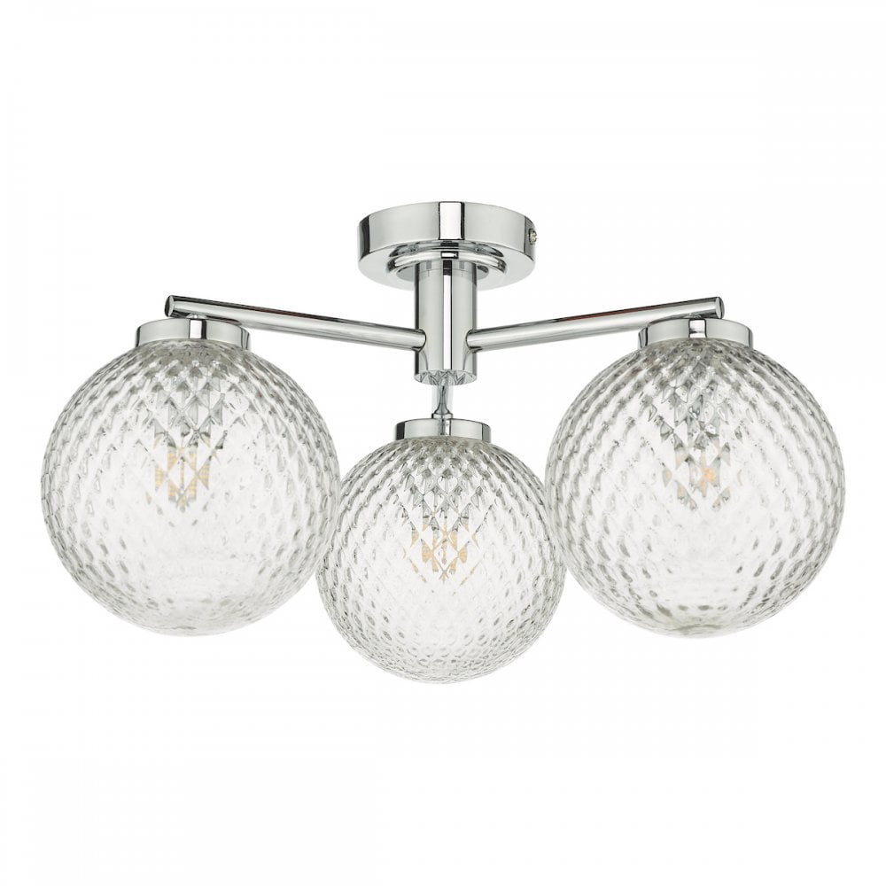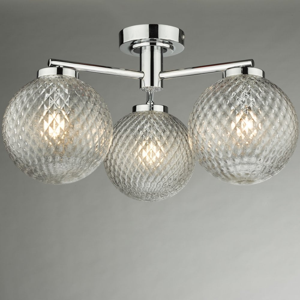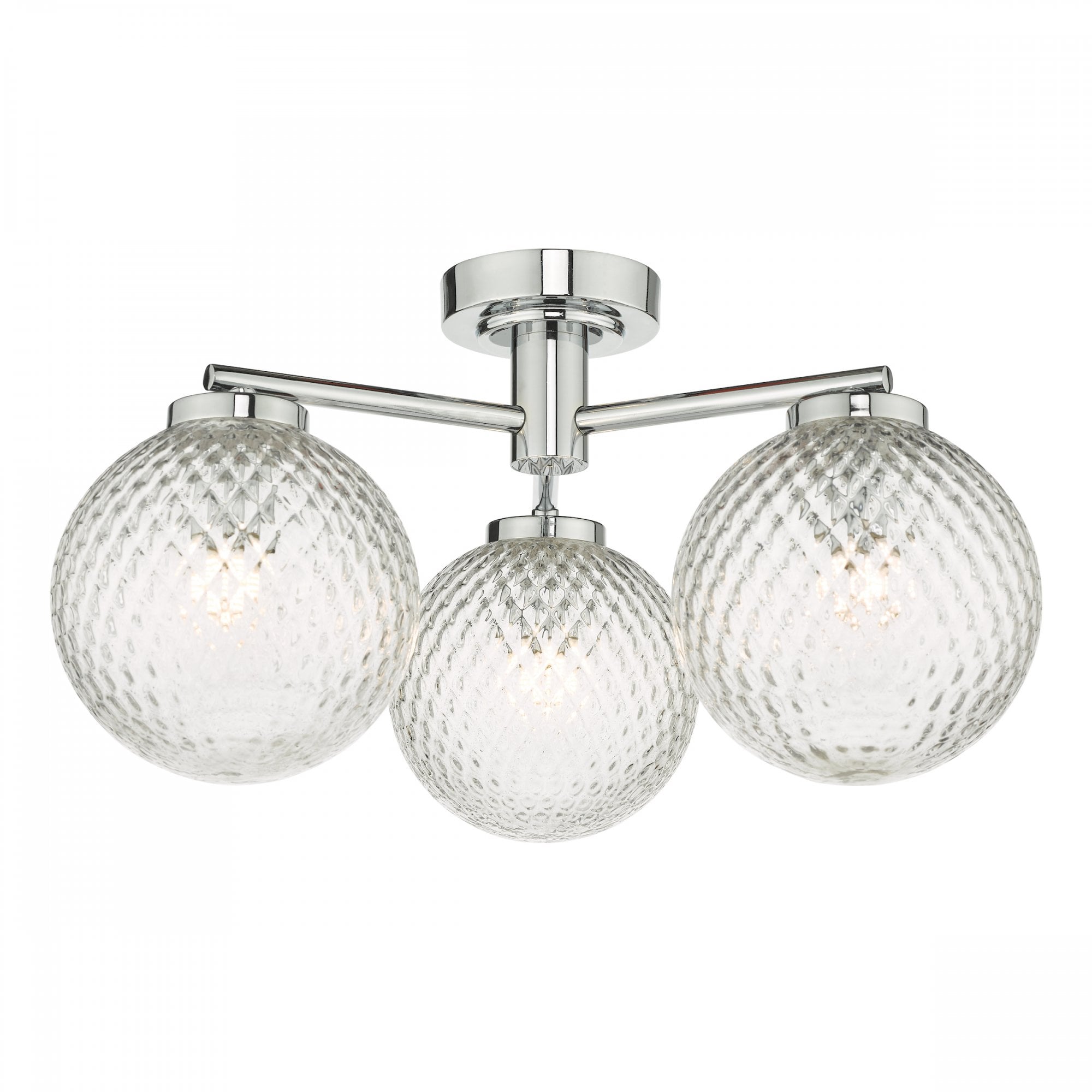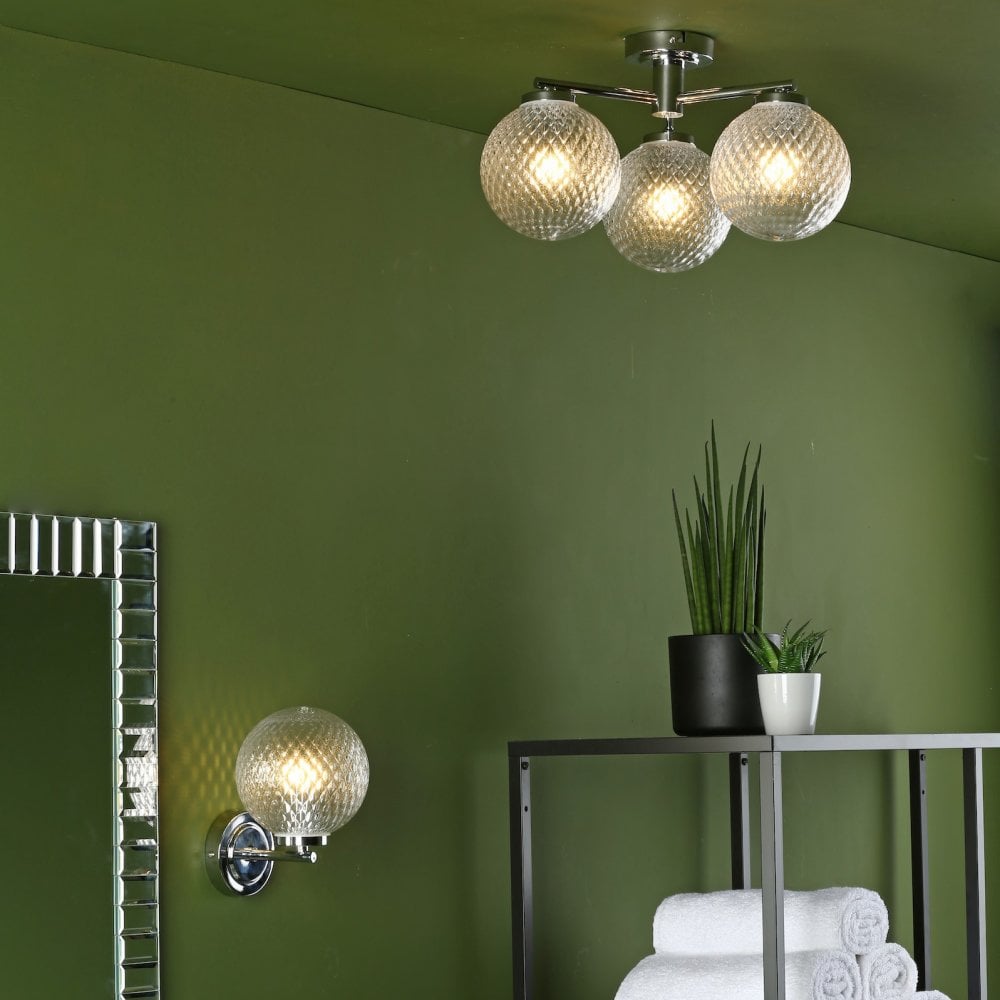 The Wayne 3 light bathroom ceiling light comes complete with textured glass and finished in a polished chrome metalwork which is designed for bathroom use.