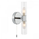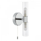 Illuminate your bathroom in style with dar lighting's Bolton 2 Light Wall Light. This contemporary bathroom wall light boasts a polished chrome finish that adds a touch of sophistication to any space. The ribbed glass outer shade, combined with a frosted inner shade, creates a beautifully diffused light, perfect for creating a relaxing ambiance. Rated IP44, this chrome bathroom light is designed to withstand moisture, making it ideal for bathroom lighting. The convenient pull cord operation adds ease of use, while the removable switch offers installation flexibility. Whether you're freshening up in the morning or winding down for a relaxing soak, the Bolton bathroom wall light from dar lighting provides the perfect blend of style and functionality for your modern bathroom.