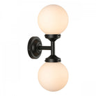 Buckley 2 Light Bathroom Wall Light Black and Opal Glass IP44