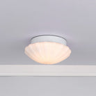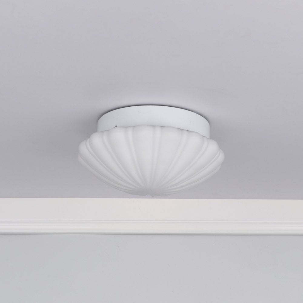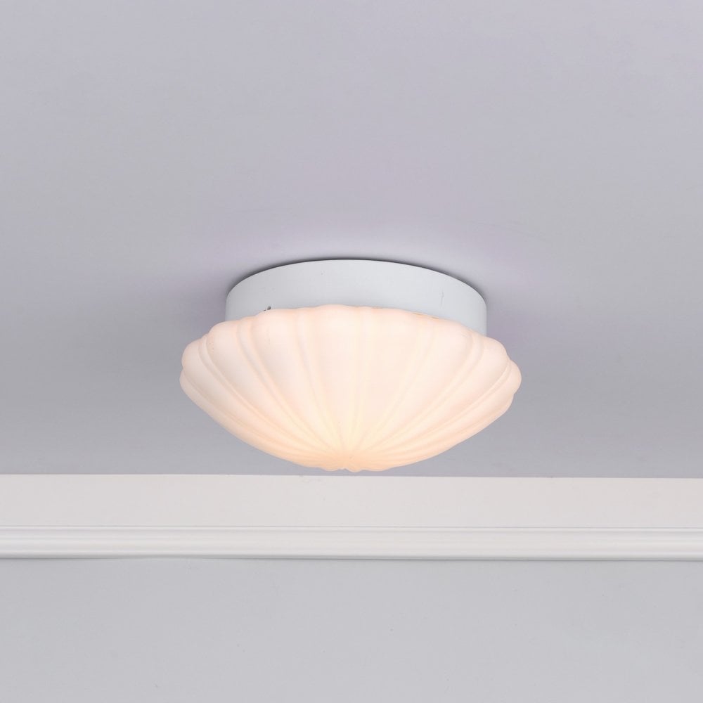 Cafe Bathroom Flush Ceiling Light Scalloped Opal Glass Shade IP44