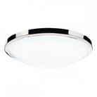 The Dover bathroom flush has an opaque white acrylic shade set within a polished chrome frame.