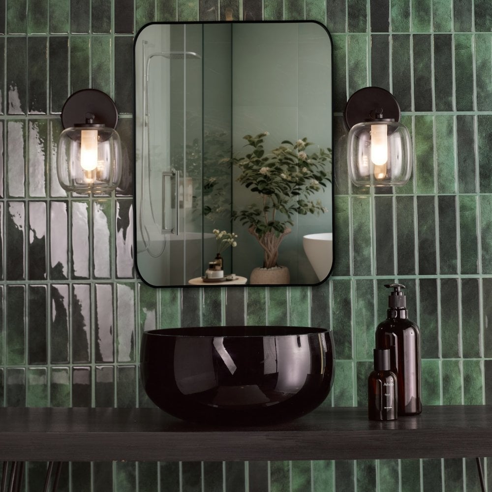 Elevate your bathroom's ambiance with the Edaline Wall Light from Dar Lighting. This contemporary black wall light boasts a striking pill-shaped shade with an opal inner, casting a soft, diffused glow. Perfect for modern bathrooms, its IP44 rating ensures safe use in humid environments. The matt black finish and glass elements create a sleek, sophisticated look that complements any decor. Practical features include a removable pull cord switch for easy operation. Whether you're applying makeup or enjoying a relaxing soak, this versatile bathroom wall light provides the perfect illumination. For a cohesive look, pair it with the matching ceiling light. The Edaline Wall Light effortlessly blends style and functionality, making it an essential addition to your bathroom lighting scheme.