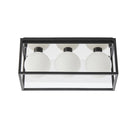 The Exter semi flush has a modern open framed designer style and features a matt black finished frame with chrome plated detail and matt opal sphere glass shades. It is also dimmable and IP44 suitable for bathroom use.