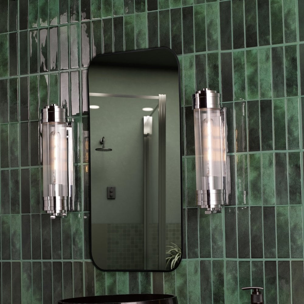 Elevate your bathroom's ambiance with this striking wall light from dar lighting. Boasting a polished nickel finish and ribbed glass, this large-scale fixture brings a touch of art deco glamour to your space. Don't let its good looks fool you - this bathroom wall light is as practical as it is stylish. Its IP44 rating ensures it can handle splashes with ease, while the removable pull cord switch offers flexibility in installation. Whether you're touching up your makeup or creating a relaxing atmosphere for a soak, this versatile light has you covered. Fancy a different look? It's also available in antique bronze. Who said bathroom lighting had to be boring?