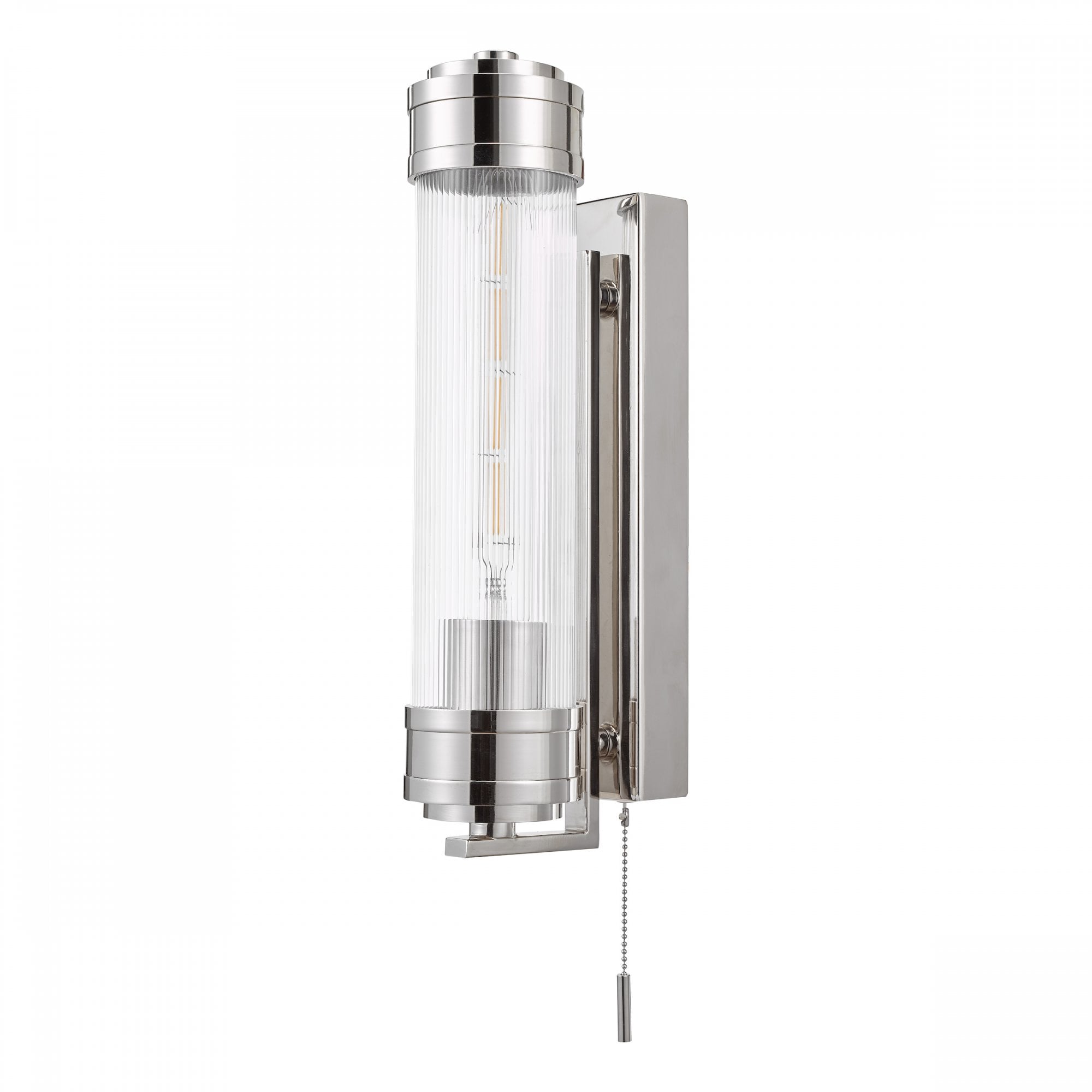Tommaso Polished Nickel & Ribbed Glass IP44 Bathroom Wall Light