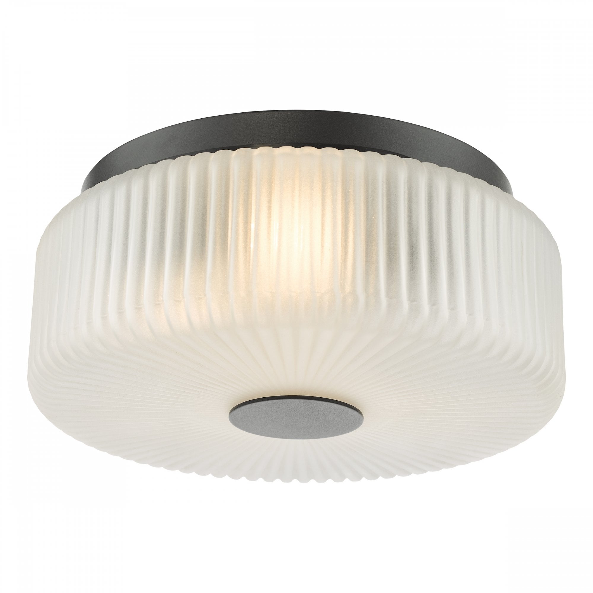 Twyman Flush Ceiling Light Satin Black & White Ribbed Glass IP44