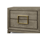 To complement the elegant look, the Lucca Bedside Cabinet is adorned with gold handles. These handles provide a luxurious and refined touch, contrasting beautifully with the textured grey/taupe oak veneer. The gold handles not only enhance the visual appeal of the cabinet but also make it easy to open and close the drawers.