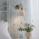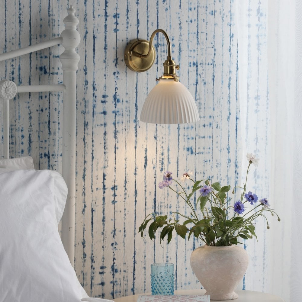 The Hadano Wall Light Natural Brass & Ceramic Domed Shade is a beautiful wall light with a fine ribbed white ceramic shade and natural brass frame. When lit, the shade gives off a lovely warm glow that complements any decor, from vintage to modern. The pull cord switch is hidden behind the fixture, allowing you to turn the light on and off with ease. The Hadano wall light features a simple yet stylish design that would look great in any room, from the kitchen to the dining room or bedroom. The Hadano wall light takes a single E14 (SES) golf ball bulb (not supplied), We recommend using LED filament lamps from our range of LED bulbs.