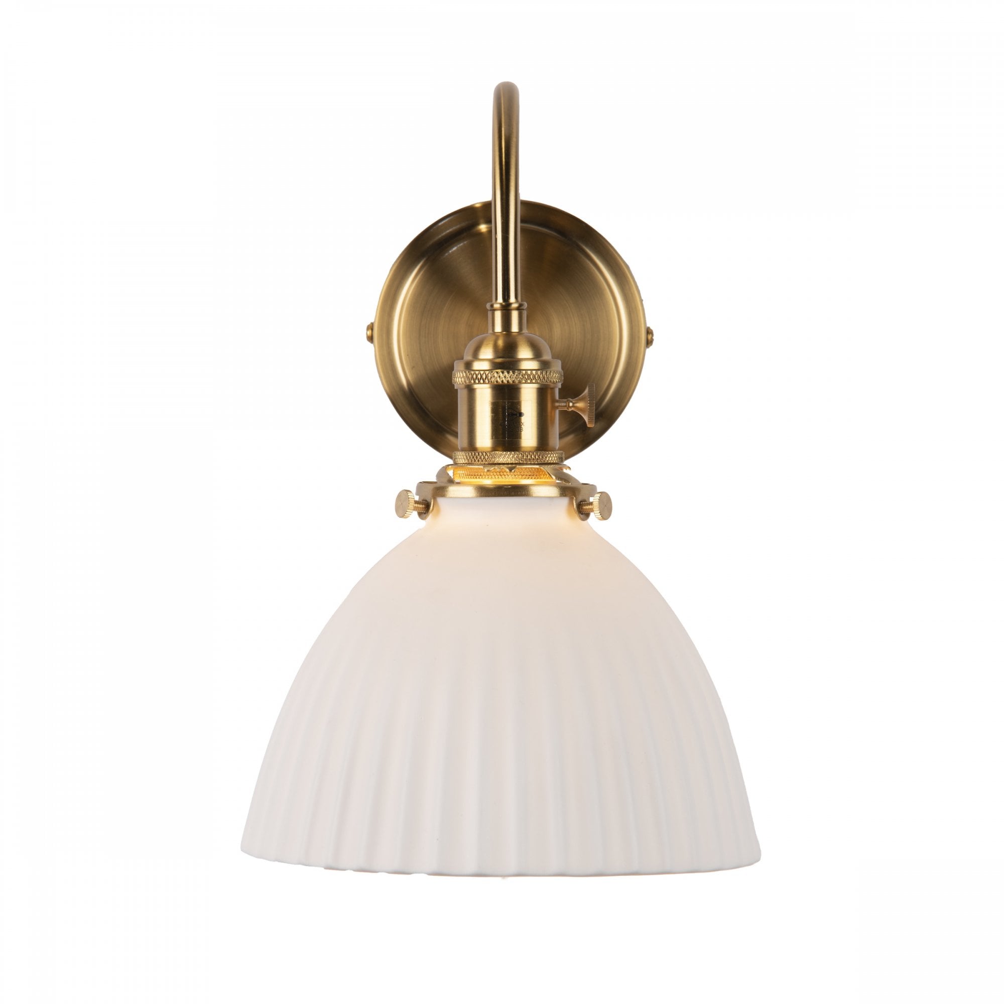 Hadano Wall Light Natural Brass & Ceramic Domed Shade