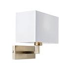 The Piccolo wall light is finished in satin nickel and complete with a rectangular white fabric shade. This fitting is switched and suitable for use with LED lamps.