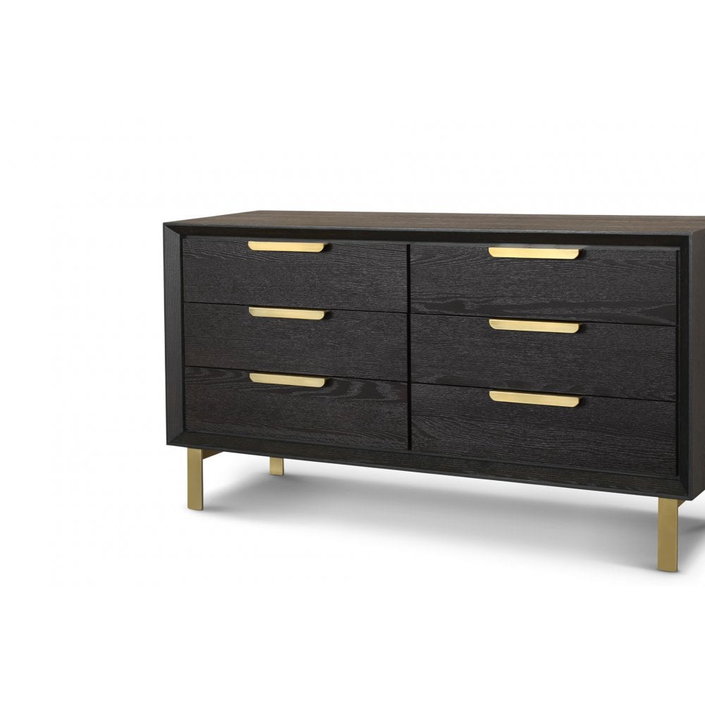 The Aspen 6-Drawer Chest of Drawers comes in a textured coffee oak veneer with gold handles. The Aspen range can help achieve the perfect finish in a any home or interior design project.