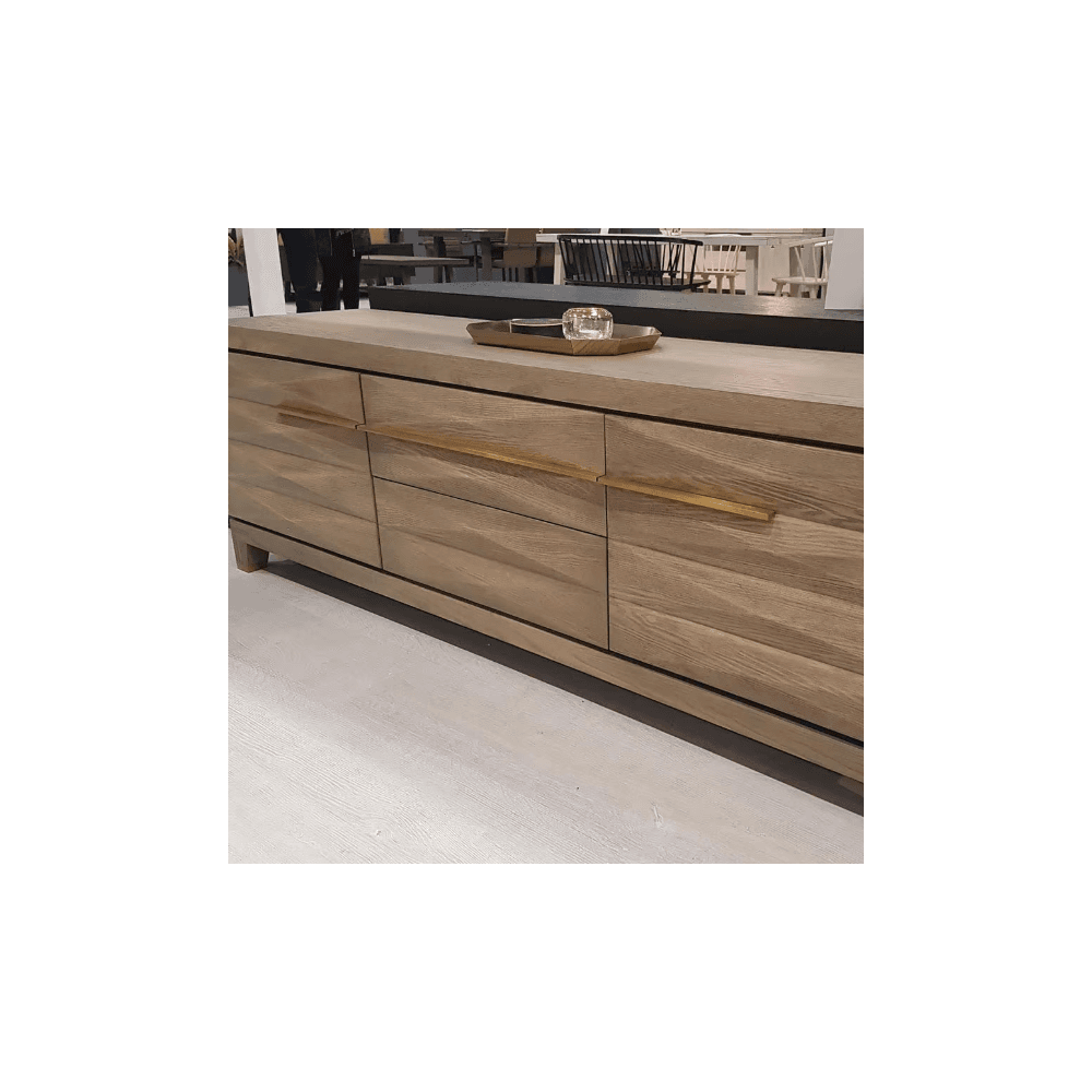The Cassis 4-Door Sideboard by Berkeley Designs comes in a striking geometric design, finished in textured grey/taupe oak veneer, and fitted with brass handles. Modern with an inspired design, the Cassis Sideboard can help achieve the perfect finish in any home or interior design project.
