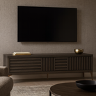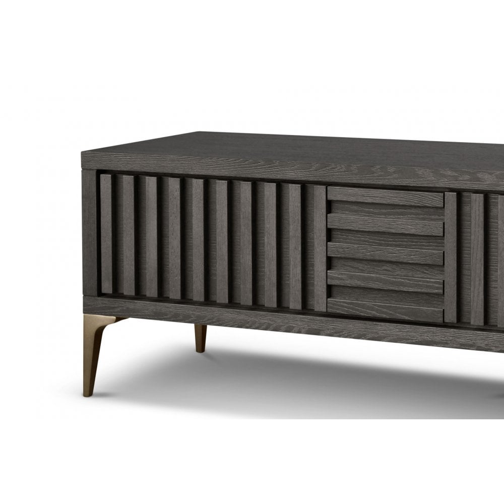 The Kyoto Media Unit has 2-doors and 2-drawers and comes in a textured dry grey oak veneer with brushed brass feet. The Kyoto range can help achieve the perfect finish in a any home or interior design project.