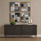 The Kyoto 4-Door Sideboard comes in a textured dry grey oak veneer with brushed brass feet. The Kyoto range can help achieve the perfect Japandi finish in a modern or contemporary interior.
