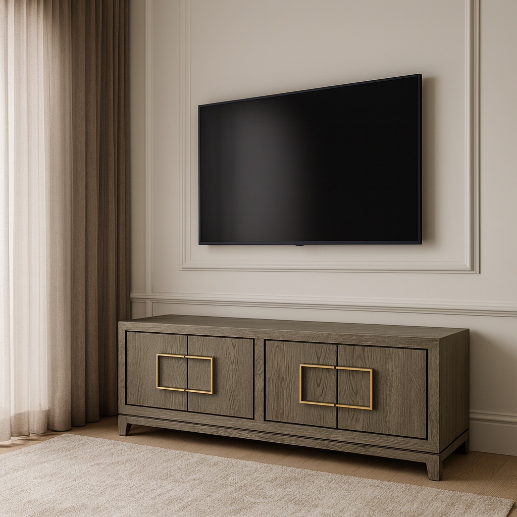 The Lucca Media Unit by Berkeley Designs comes in a textured grey/taupe coloured oak veneer and has gold handles in a striking rectangular shaped design. Being one of our most popular ranges, the Lucca Media Unit can help achieve the perfect finish in any home or interior design project.