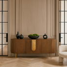 Napa Sideboard Textured Carmel Oak Wood Bronze Handles & Legs 4 Door