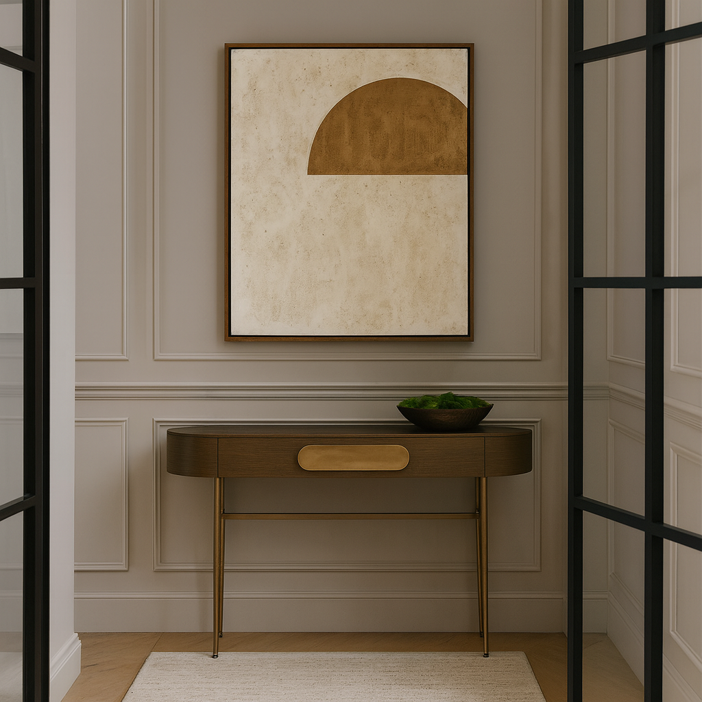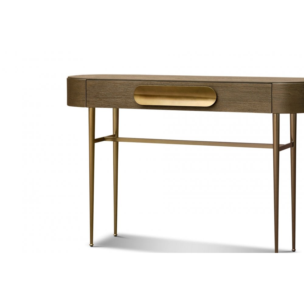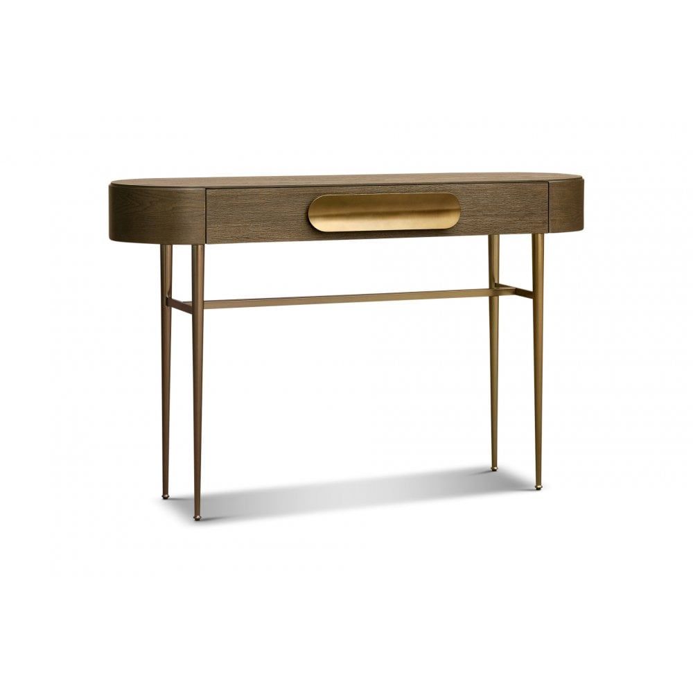 The Napa Console Table comes in a textured caramel oak veneer. With its curved and unique design, the Napa console can help achieve the perfect finish in a any home or interior design project.