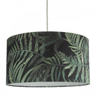 Dar Lighting’s Large Bamboo drum lampshade sports a dramatic tropical leaf print in greens on a black background. The 100% cotton fabric has a luxurious velvet finish with a white lining.