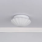 Cafe Bathroom Flush Ceiling Light Scalloped Opal Glass Shade IP44