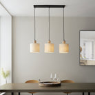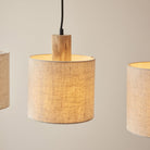 Scandi inspired linear pendant ideal for using above a breakfast bar or table. Natural wood and natural linen shade creates a cosy glow.