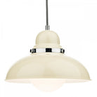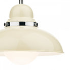 The DYNAMO 1lt Pendant features a polished chrome ceiling plate and a metal retro-styled shades in gloss cream and comes complete with an opal white diffuser.