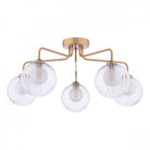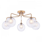 The Feya 5 Light Semi-Flush Antique Bronze & Clear/Opal Glass is a beautiful semi-flush fitting with duplex glass shades combining a ribbed clear glass outer, with opal inner to reduce glare. The simple antique bronze frame suits low ceiling rooms and allows the glass to really shine. The Feya semi-flush is suitable for an entryway, dining room or anywhere a little style is needed.