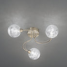 In bronze finish with clear glass spheres filled with fixed, spun glass strands . LED G9 lamps should be used. Suitability for dimming will depend both on the lamp and switch used.