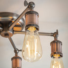 An industrial styled compact ceiling light, finished in aged pewter and aged copper, making it up to date with on-trend 'retro' styling. Adjustable knuckles and knurled lamp holders complete the authentic look. Compact design makes it perfect for low ceilings, perfect when paired with filament LED lamps.