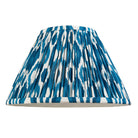 30cm tapered shade with white gimbal. Unique Ikat pattern design in marlin blue with taped edge detailing and plain inner lining. Perfect when paired with one of our beautifully decorative table lights.