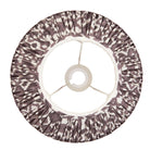 30cm tapered shade with white gimbal. Unique Ikat pattern design in pearl grey with taped edge detailing and plain inner lining. Perfect when paired with one of our beautifully decorative table lights.