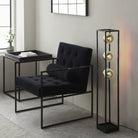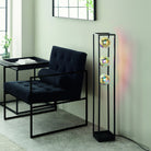 Inventive design with a drop of fun iridescent spheres which appear to float within the black frame of this contemporary floor light. Matching table lamp also available.