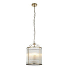 Timeless pendant with understated elegance; ribbed glass panels with antique brass finish metal work. An adjustable chain with gold cable making it perfect for placing in stairwells, hallways as well as dining and living spaces. 1 light version also available.