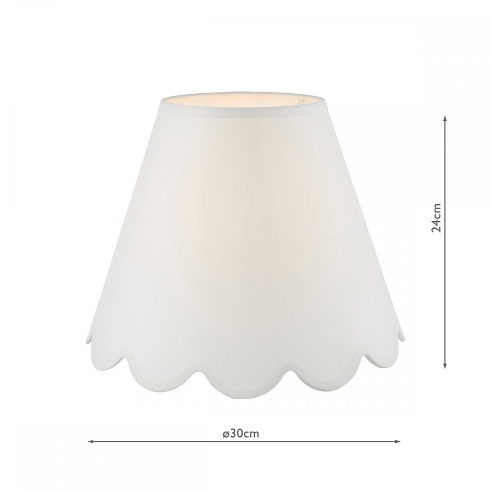Add a touch of coastal elegance to your space with this Nerita scalloped shade from dar lighting. Crafted from ivory linen, this tapered drum shade boasts a charming scalloped edge that evokes the gentle curves of seashells. The matching taped edge provides a polished finish, making it a versatile choice for medium table lamps in any room. Part of dar lighting's Nerita range, this 30cm shade is available in various sizes to suit your needs. Whether you're aiming for a beachy vibe or simply want to soften your lighting, this shade diffuses light beautifully, creating a warm and inviting atmosphere in your home.