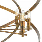 The Nitya 8 light pendant is a perfect example of the refined industrial style inspired by industrial lighting using a rich pallet of materials and finishes. Featuring sweeping metal work around an elegantly simple five-light fitting. Finished in our distinctive matt petrol copper finish. Making for a unique centre piece in your living room, or above a dining table.