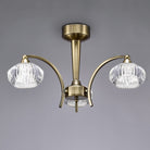 In bronze finish with small ribbed glasses. LED G9 lamps should be used. Suitability for dimming will depend both on the lamp and switch used.