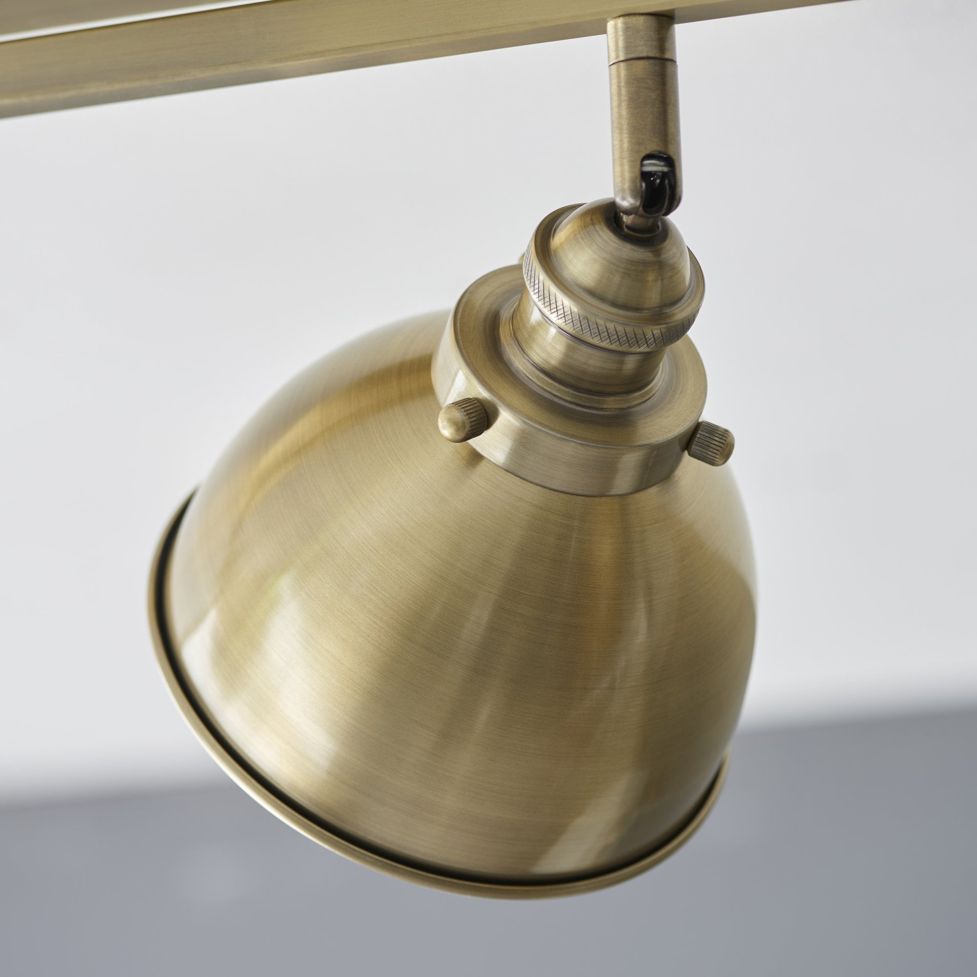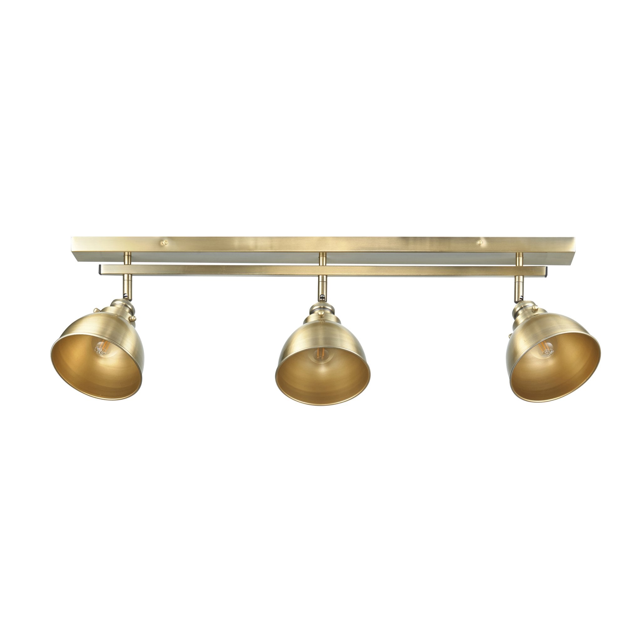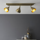 Industrial design meets modern style in this antique brass plate three spotlight fitting, with luxurious warm brass paint effect.