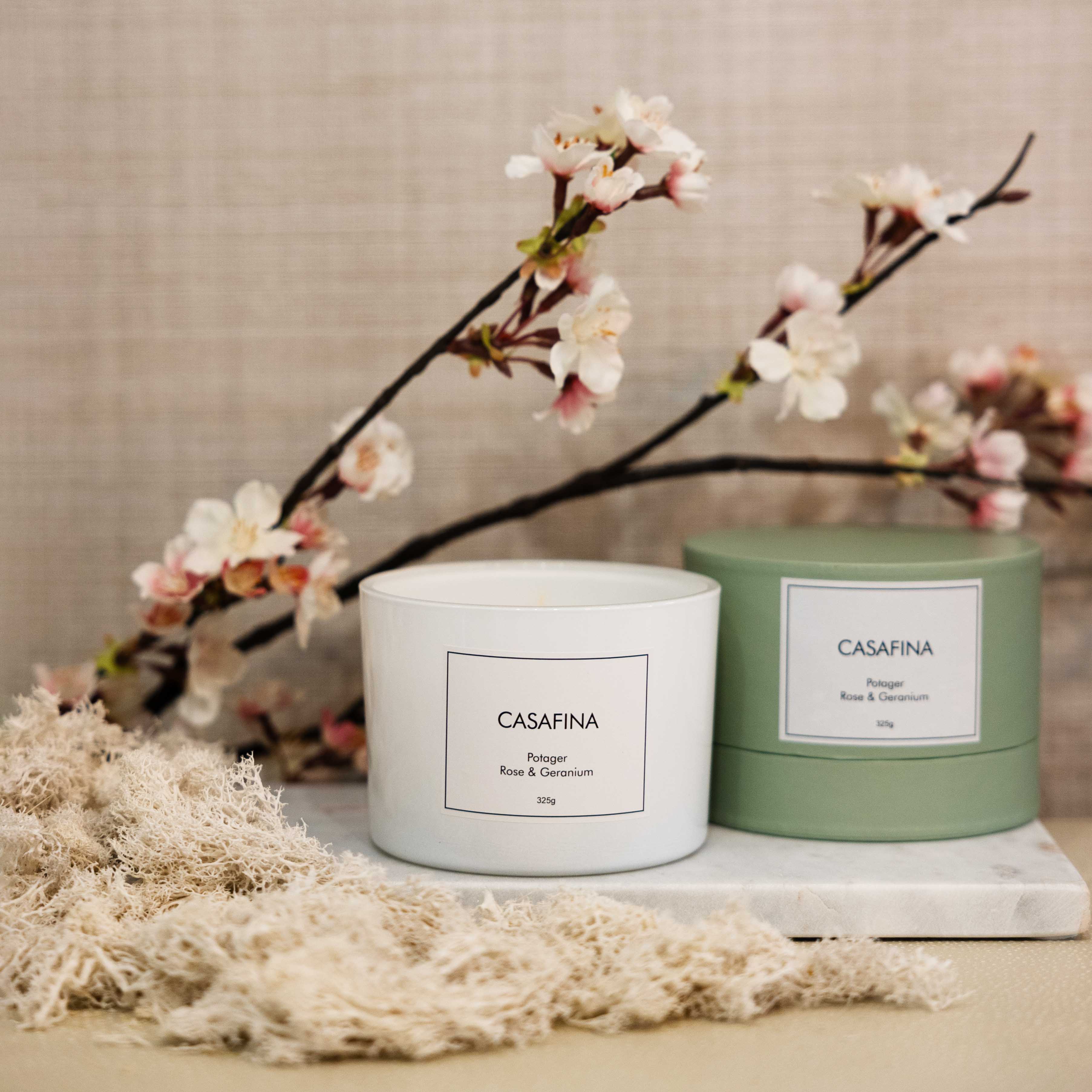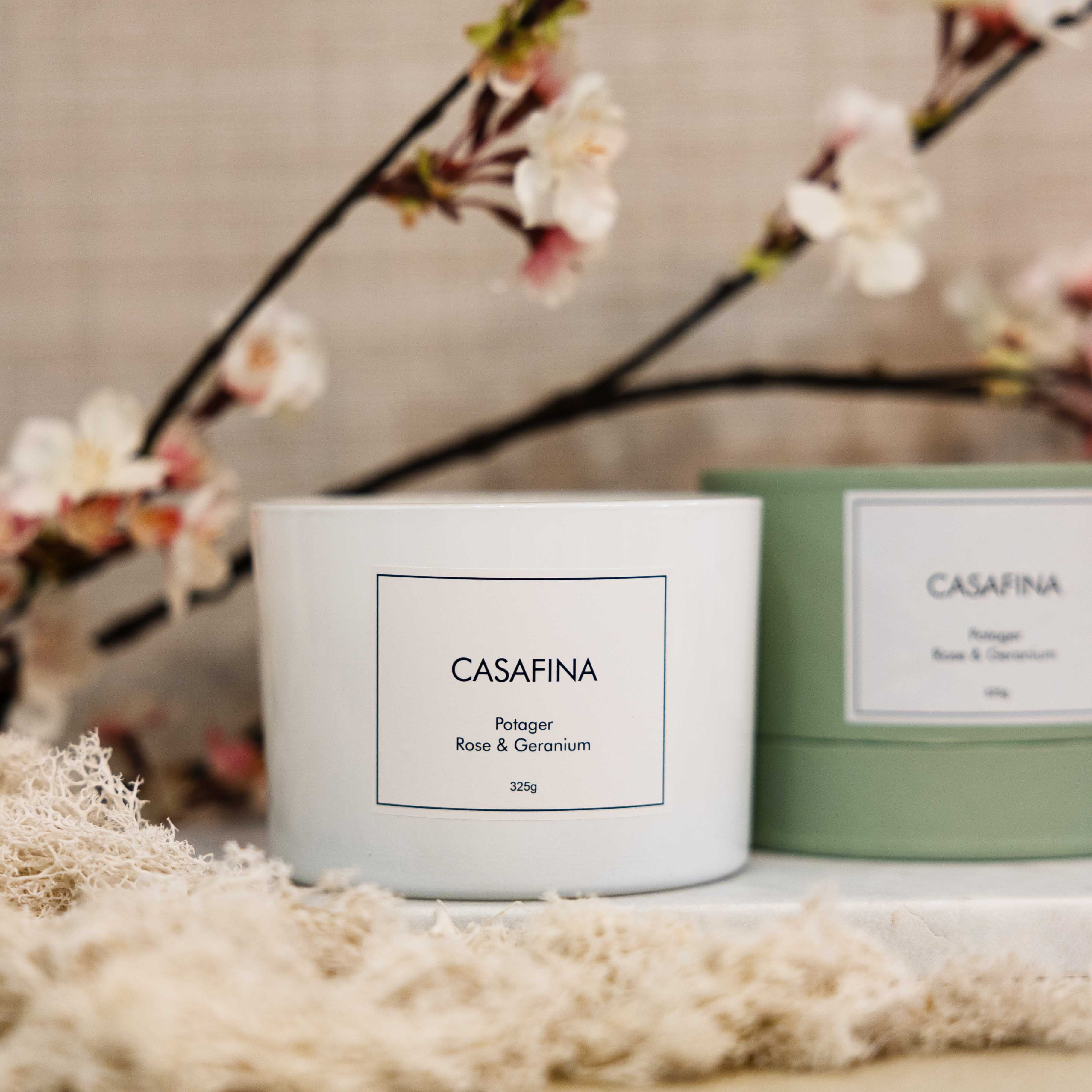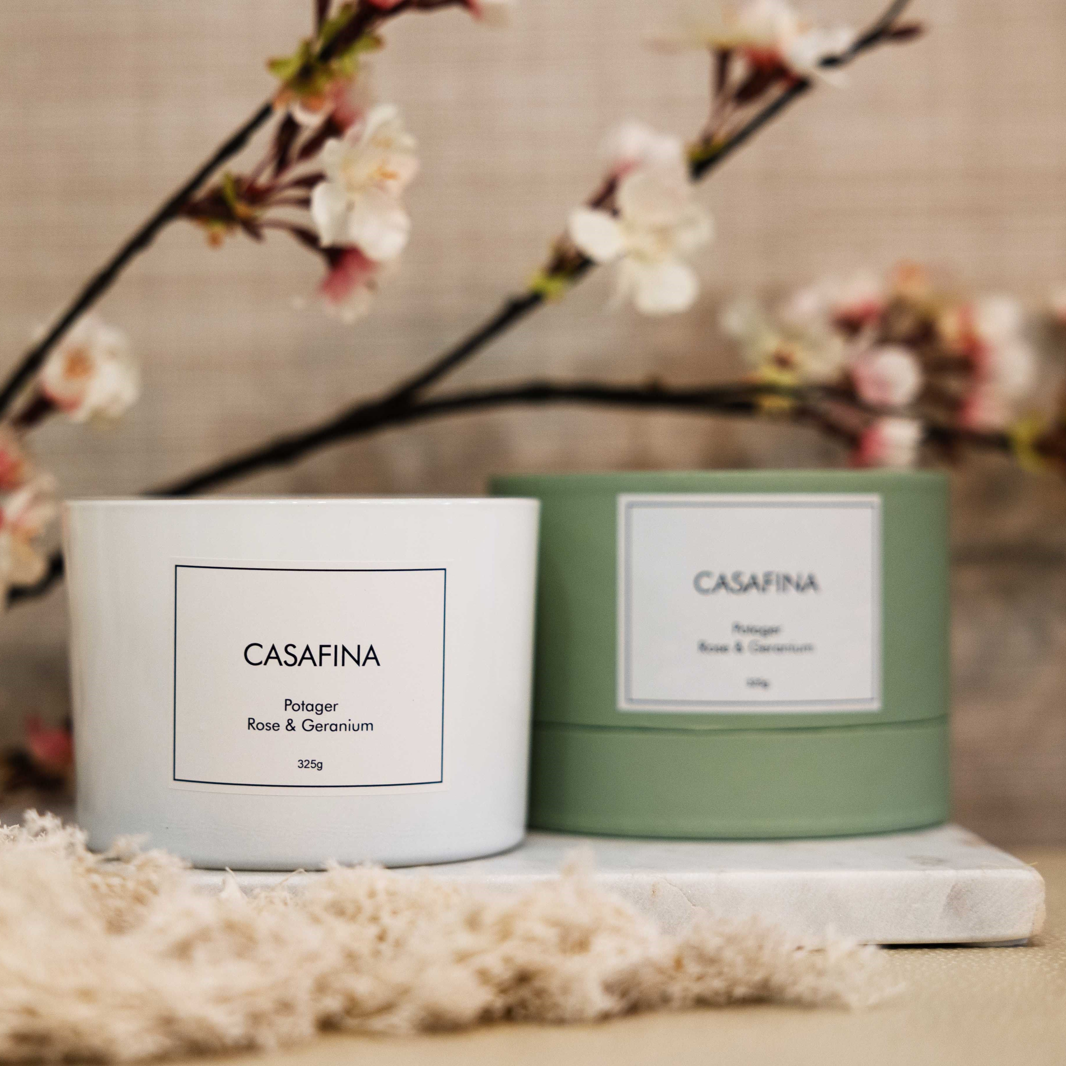 Made with soy wax and rose and geranium fragrance, the Casafina Potager candle fills your home with a delightful floral aroma. The perfect blend of elegance and relaxation, this candle is perfect for any occasion. Take a deep breath and let the natural scents soothe your senses.
