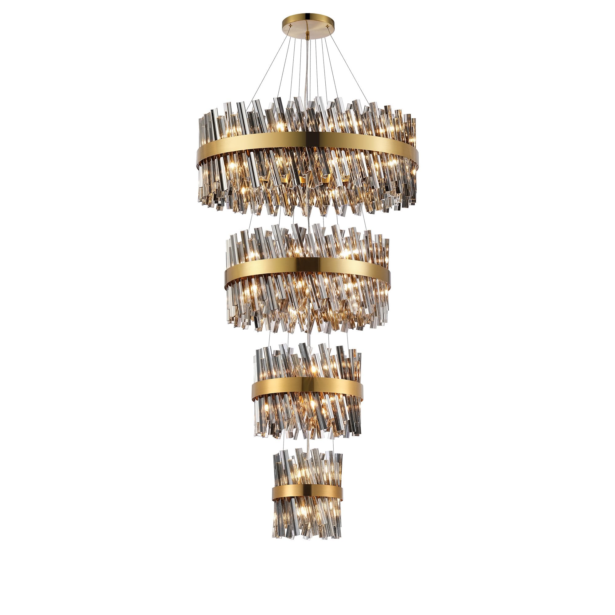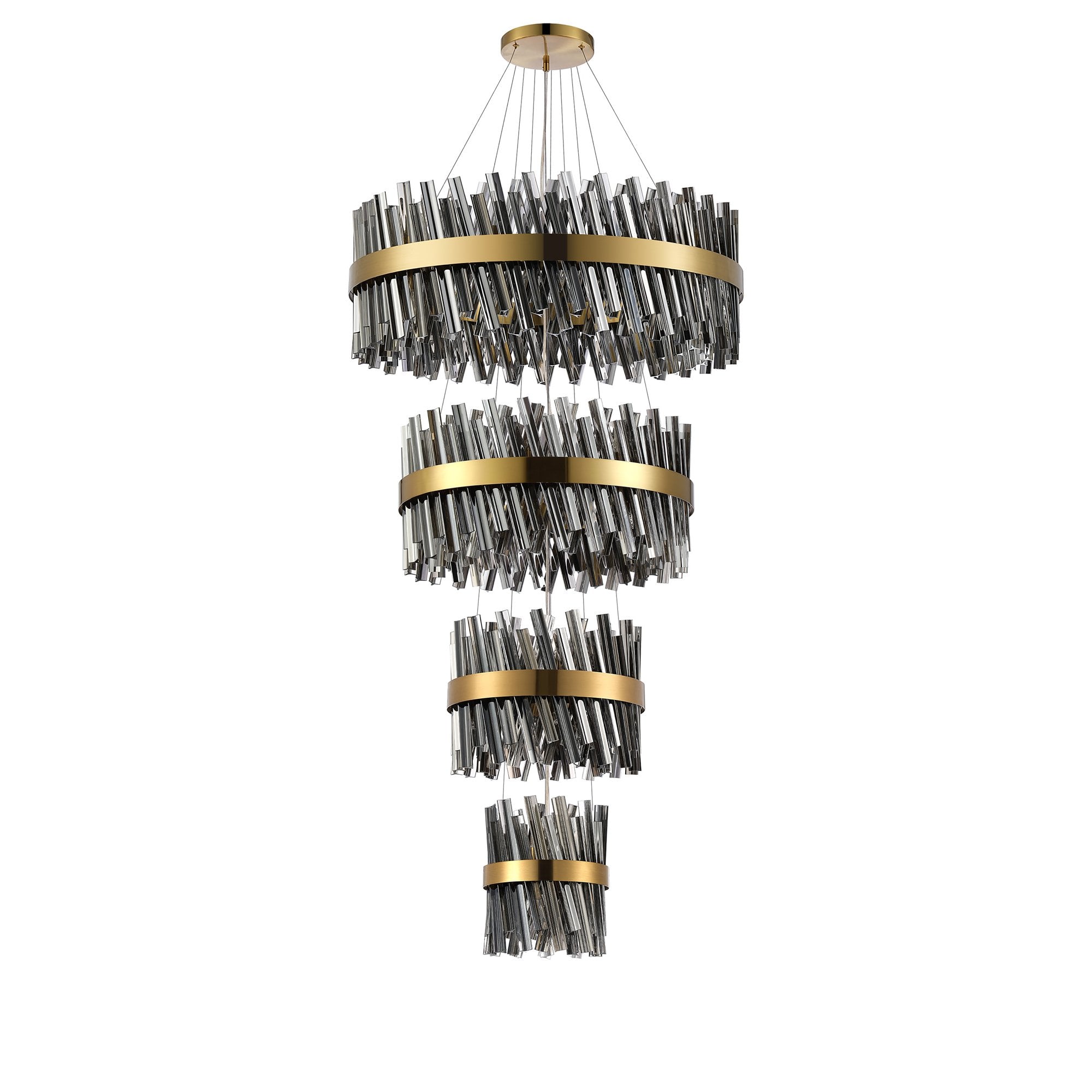 Alia 4 Tier 58 Light Brass & Smoked Glass Pendant