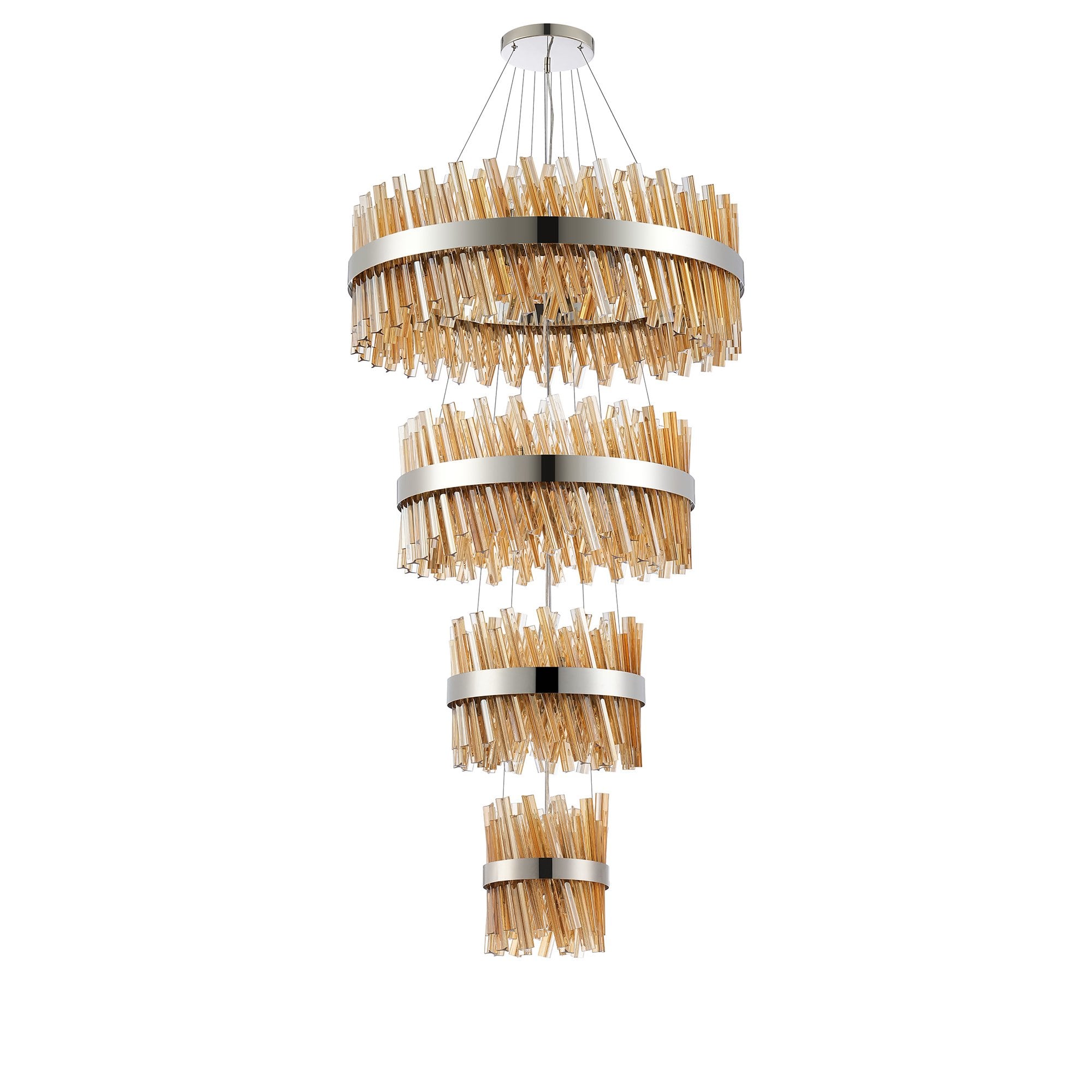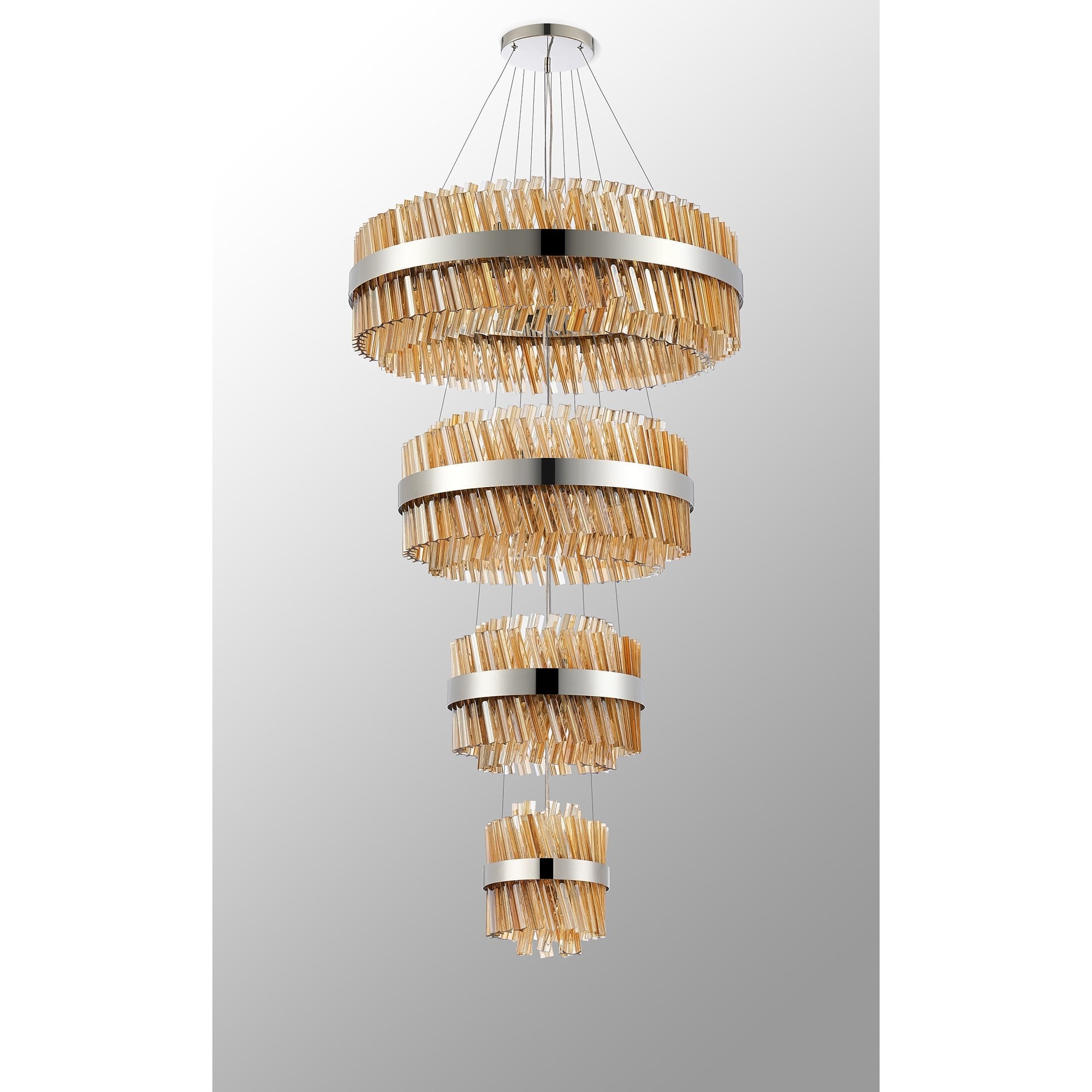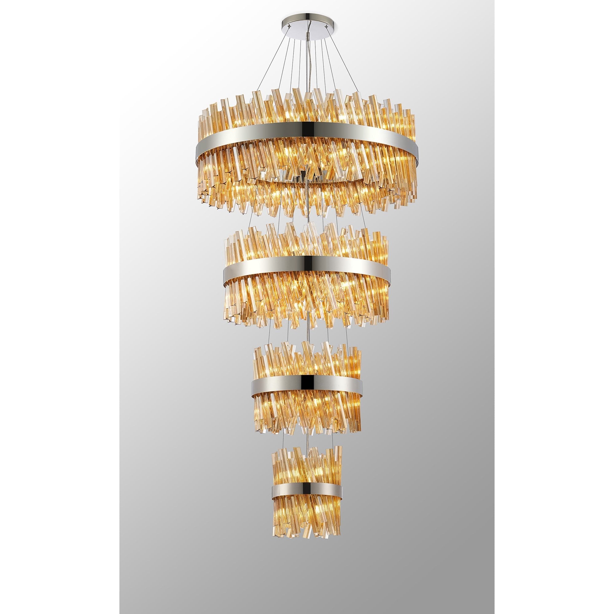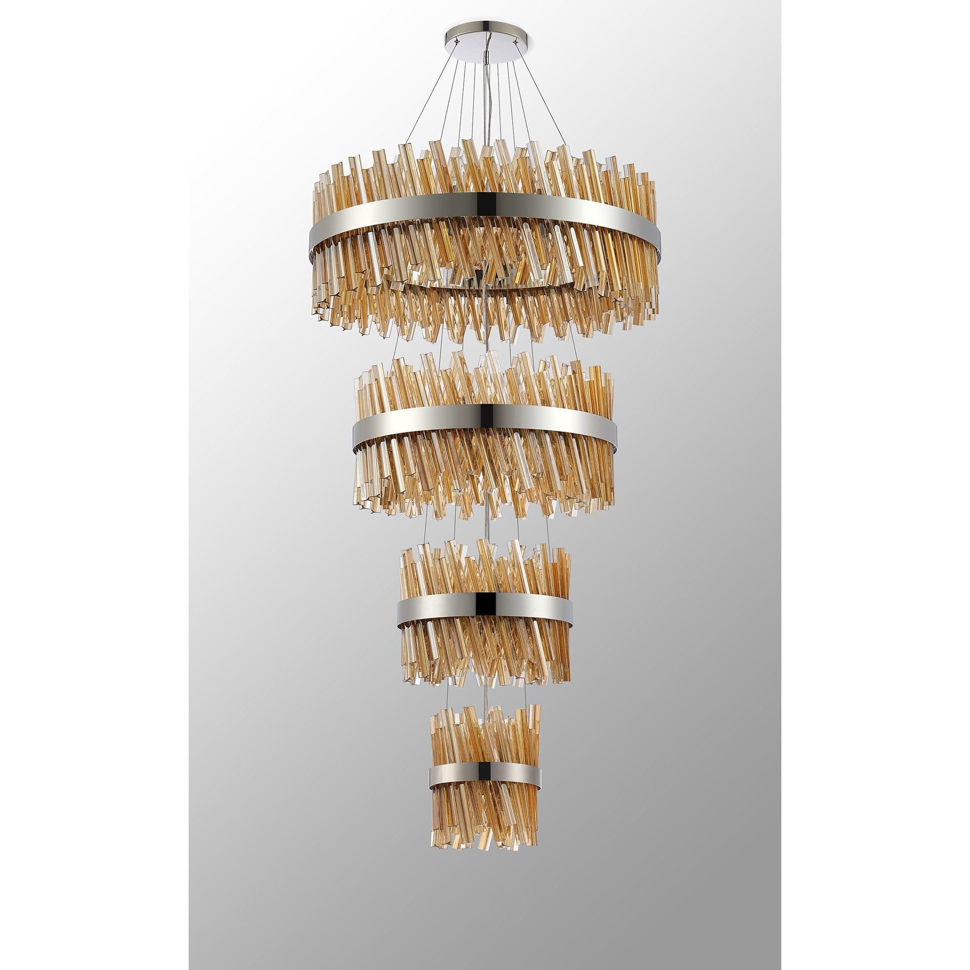 Alia 4 Tier 58 Light Polished Nickel & Amber Glass Pendant